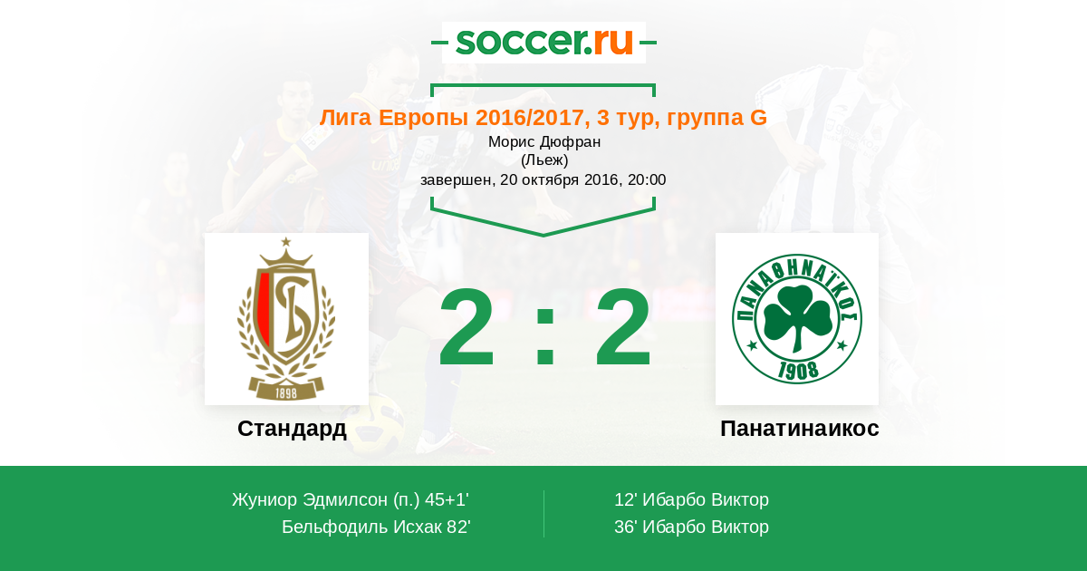 Стандард - Панатинаикос: обзор матча 20 октября 2016