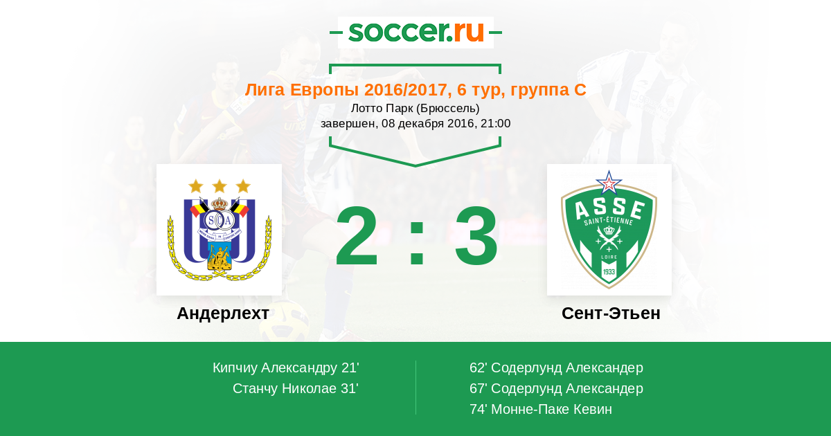 Андерлехт - Сент-Этьен: обзор матча 8 декабря 2016