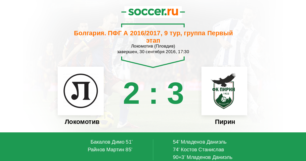 Локомотив - Пирин: обзор матча 30 сентября 2016