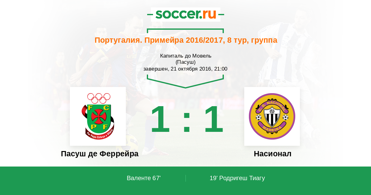 Пасуш де Феррейра - Насионал: обзор матча 21 октября 2016