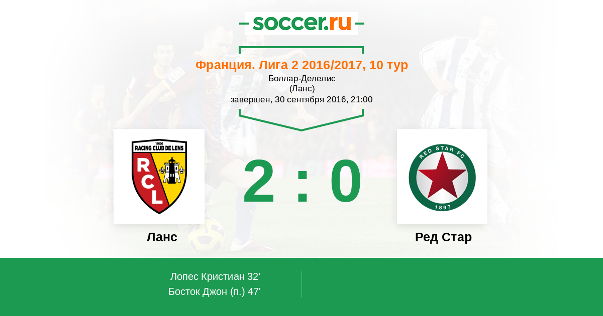 Ланс - Ред Стар: обзор матча 30 сентября 2016
