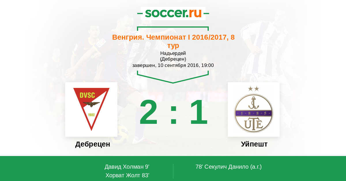 Дебрецен - Уйпешт: обзор матча 10 сентября 2016