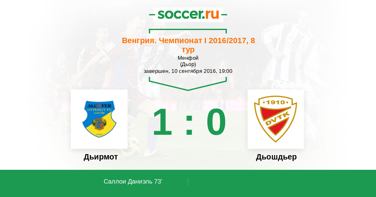 Дьирмот - Дьошдьер: обзор матча 10 сентября 2016