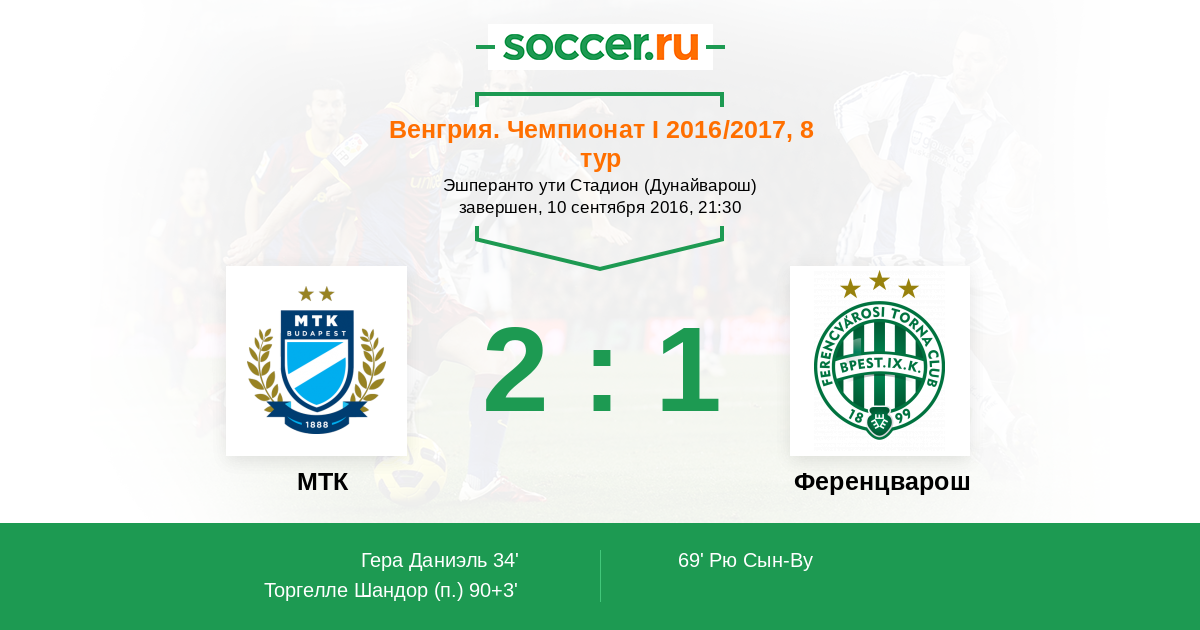 МТК - Ференцварош: обзор матча 10 сентября 2016
