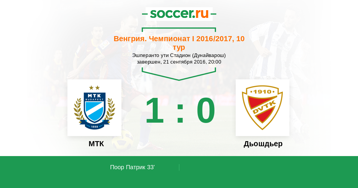 МТК - Дьошдьер: обзор матча 21 сентября 2016