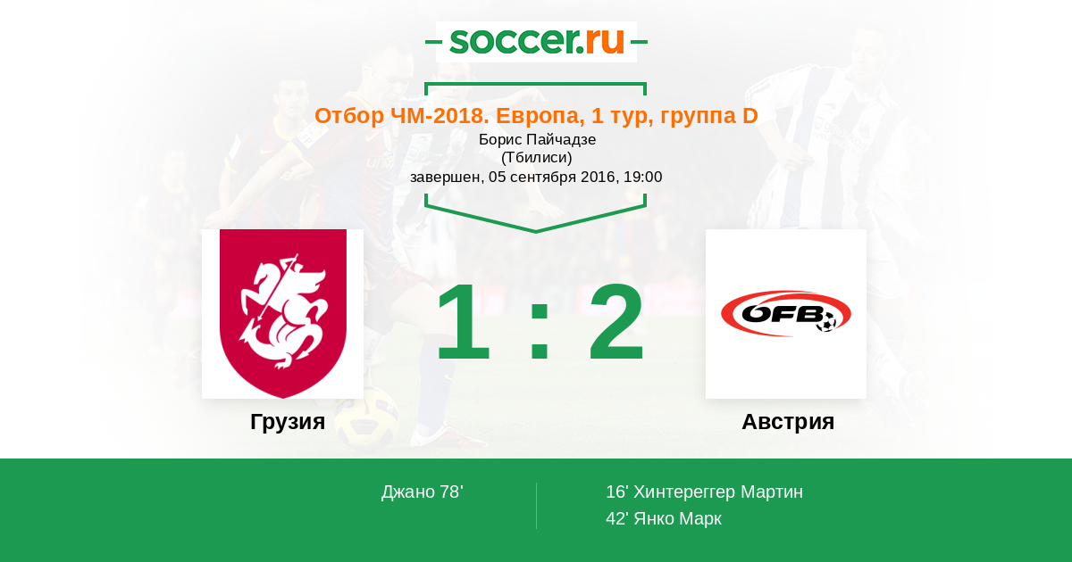 Грузия - Австрия: обзор матча 5 сентября 2016
