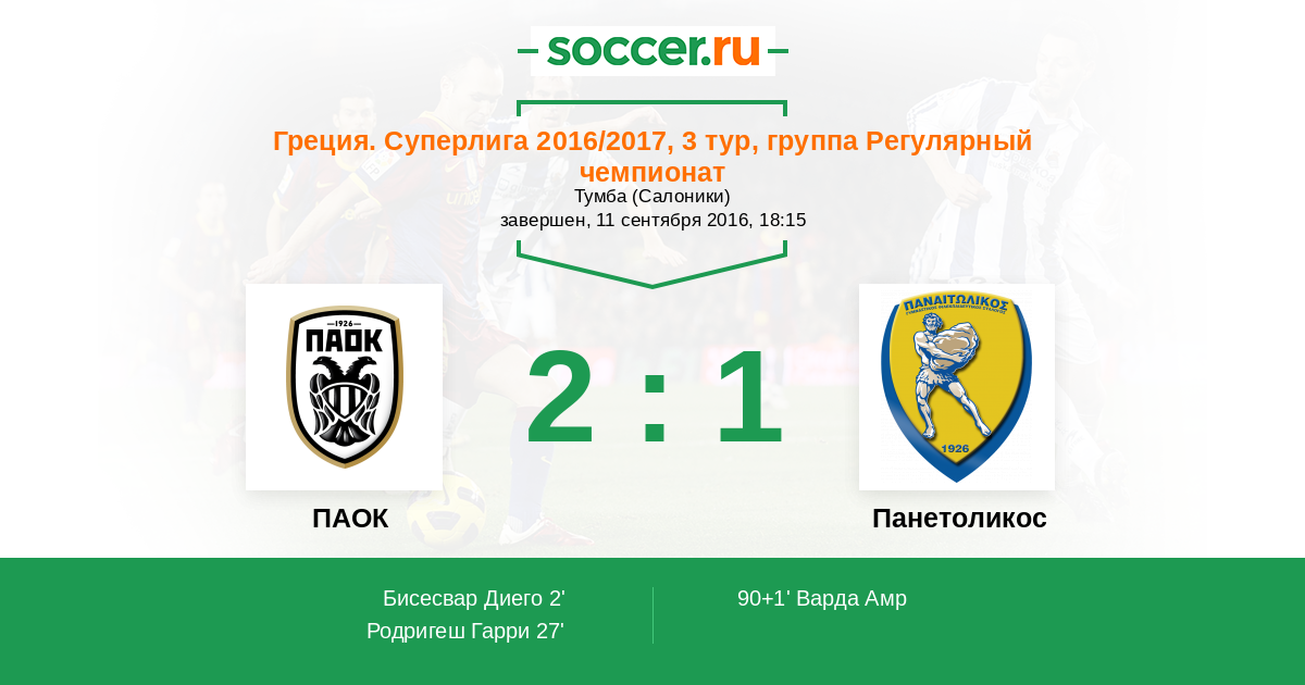 ПАОК - Панетоликос: обзор матча 11 сентября 2016