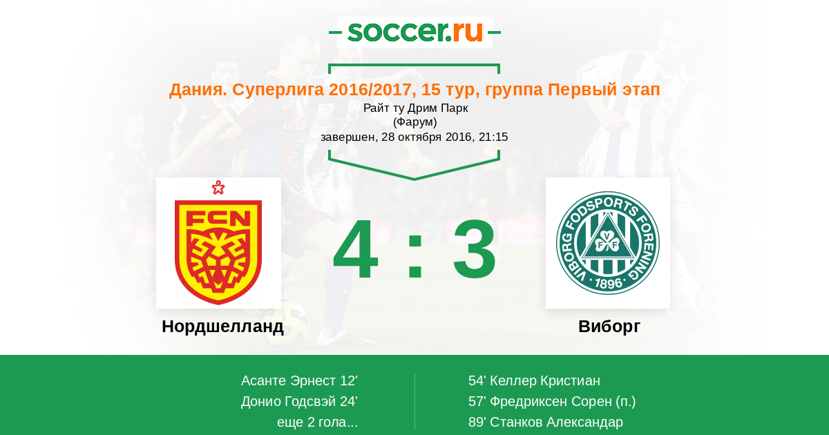 Нордшелланд - Виборг: обзор матча 28 октября 2016
