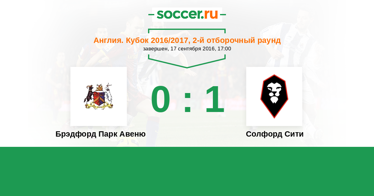 Брэдфорд Парк Авеню - Солфорд Сити: обзор матча 17 сентября 2016
