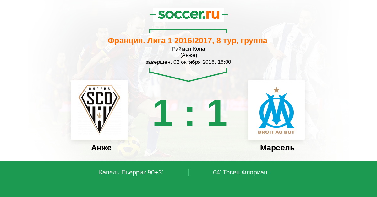 Анже - Марсель: обзор матча 2 октября 2016