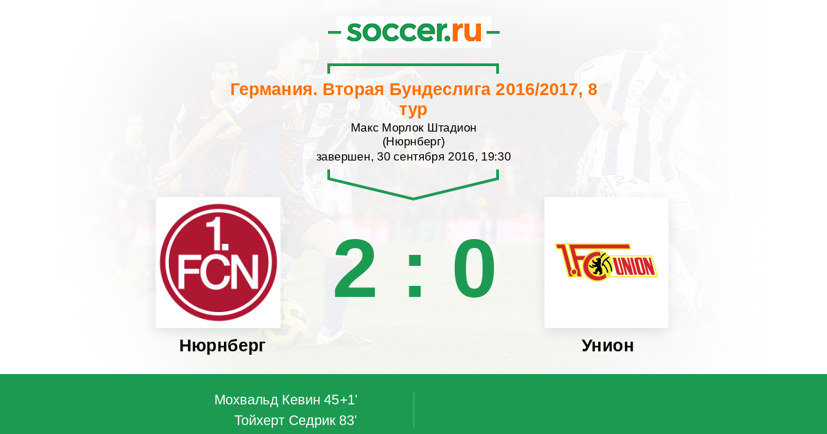 Нюрнберг - Унион: обзор матча 30 сентября 2016