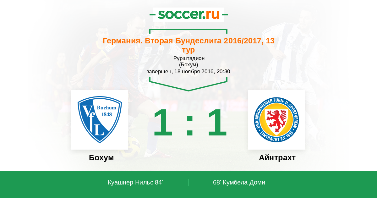 Бохум - Айнтрахт: обзор матча 18 ноября 2016