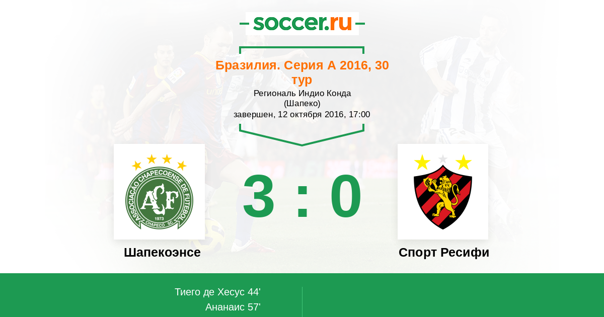 Шапекоэнсе - Спорт Ресифи: обзор матча 12 октября 2016