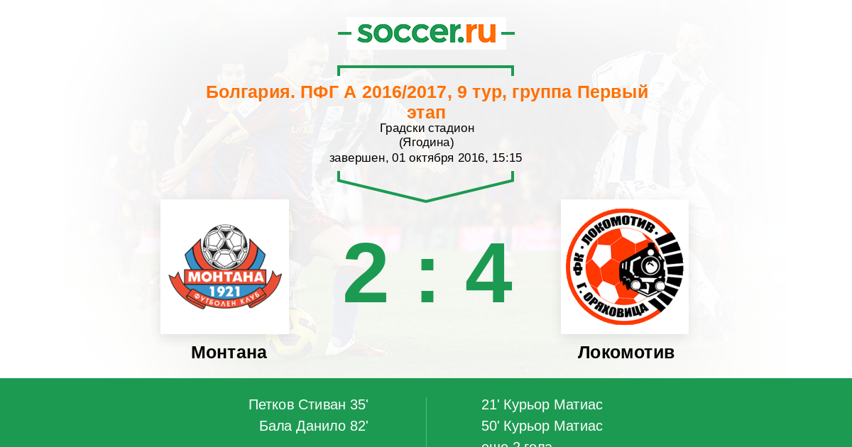 Монтана - Локомотив: обзор матча 1 октября 2016
