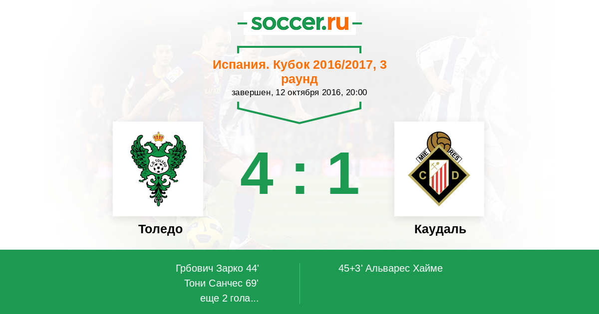 Толедо - Каудаль: обзор матча 12 октября 2016