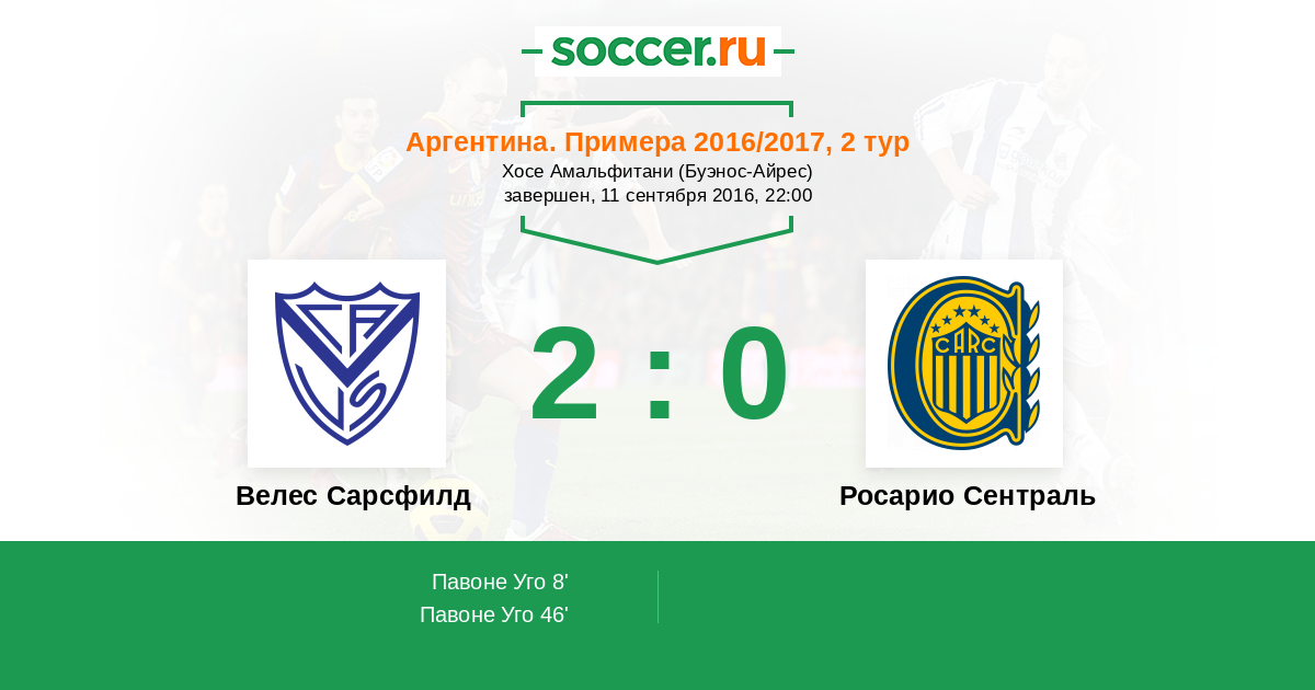 Велес Сарсфилд - Росарио Сентраль: обзор матча 11 сентября 2016