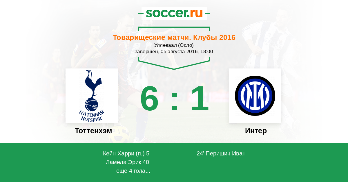 Тоттенхэм - Интер: обзор матча 5 августа 2016