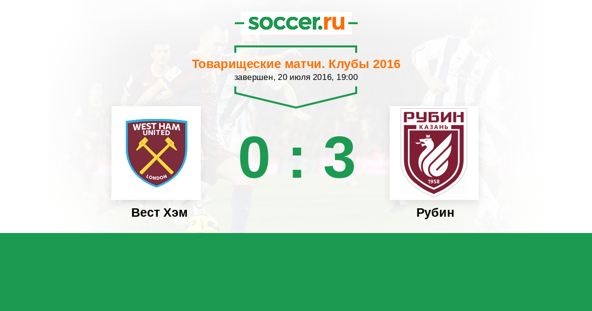 Вест Хэм - Рубин: обзор матча 20 июля 2016