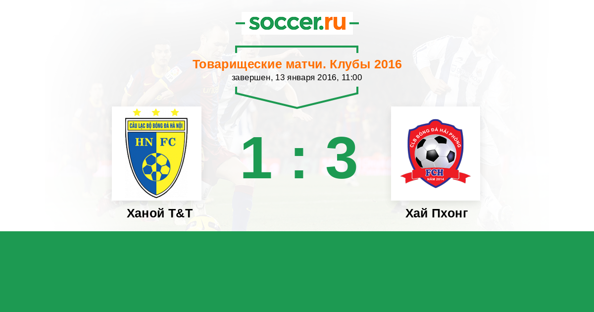 Ханой Т&Т - Хай Пхонг: обзор матча 13 января 2016