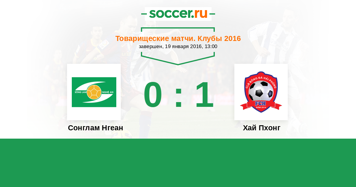 Сонглам Нгеан - Хай Пхонг: обзор матча 19 января 2016