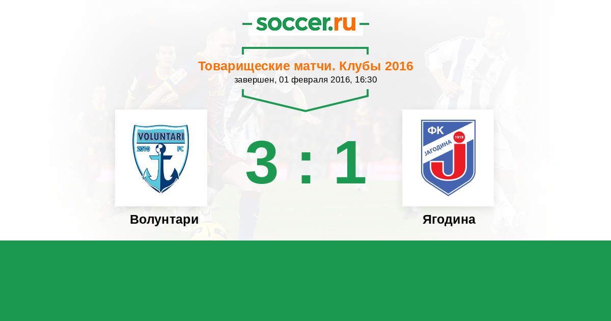Волунтари - Ягодина: обзор матча 1 февраля 2016