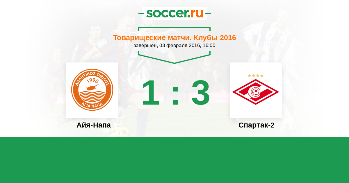 Айя-Напа - Спартак-2: обзор матча 3 февраля 2016