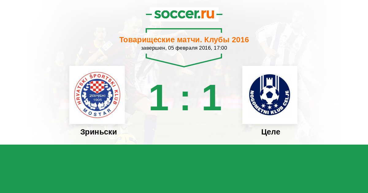 Зриньски - Целе: обзор матча 5 февраля 2016