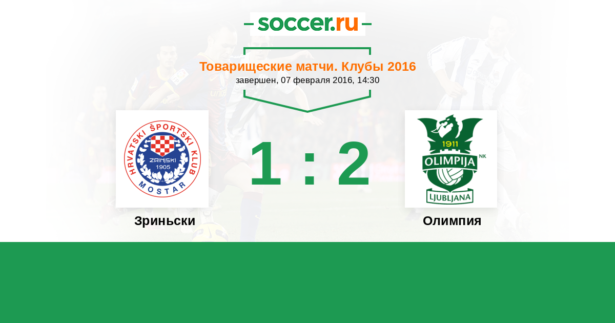 Зриньски - Олимпия: обзор матча 7 февраля 2016