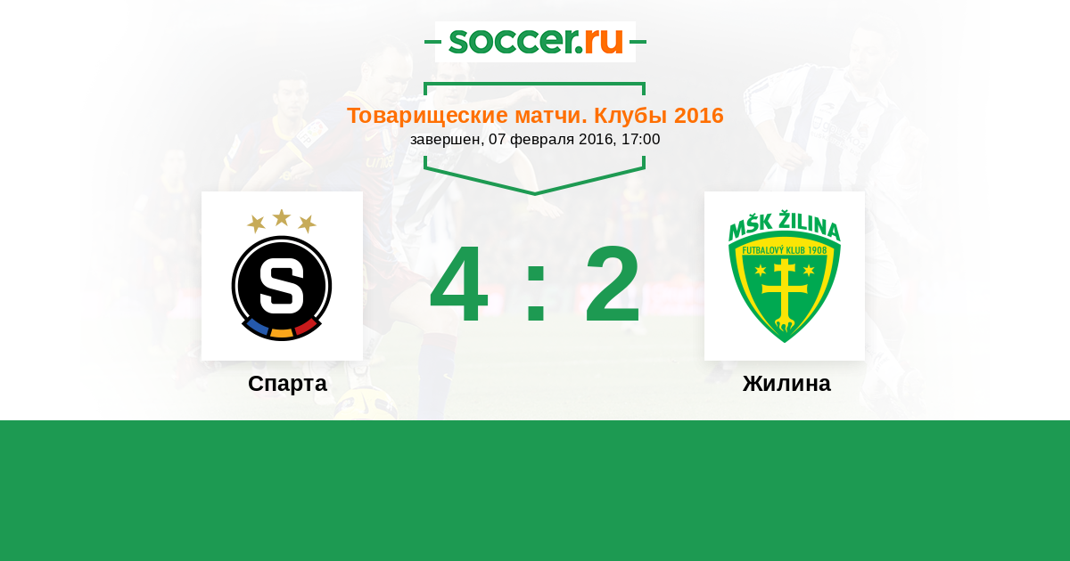 Спарта - Жилина: обзор матча 7 февраля 2016
