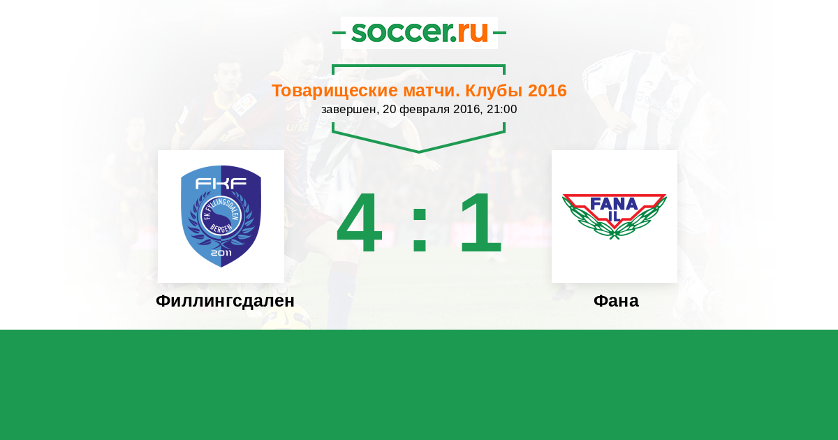 Филлингсдален - Фана: обзор матча 20 февраля 2016
