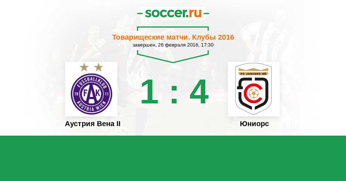 Аустрия Вена II - Юниорс: обзор матча 26 февраля 2016