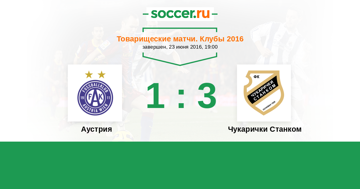 Аустрия - Чукарички Станком: обзор матча 23 июня 2016