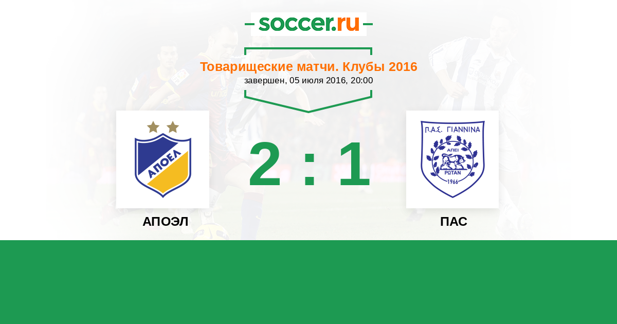 АПОЭЛ - ПАС: обзор матча 5 июля 2016