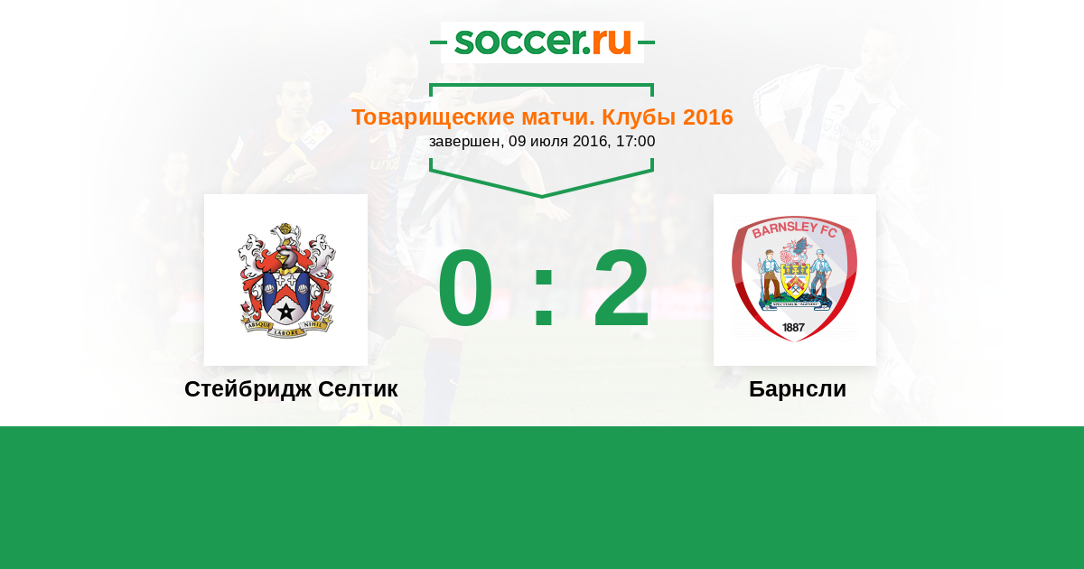 Стейбридж Селтик - Барнсли: обзор матча 9 июля 2016