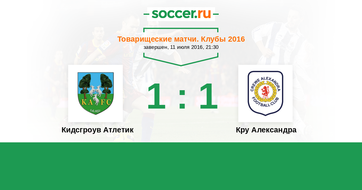 Кидсгроув Атлетик - Кру Александра: обзор матча 11 июля 2016