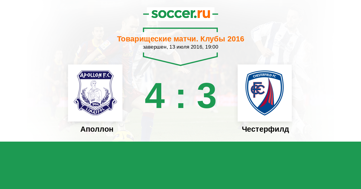 Аполлон - Честерфилд: обзор матча 13 июля 2016