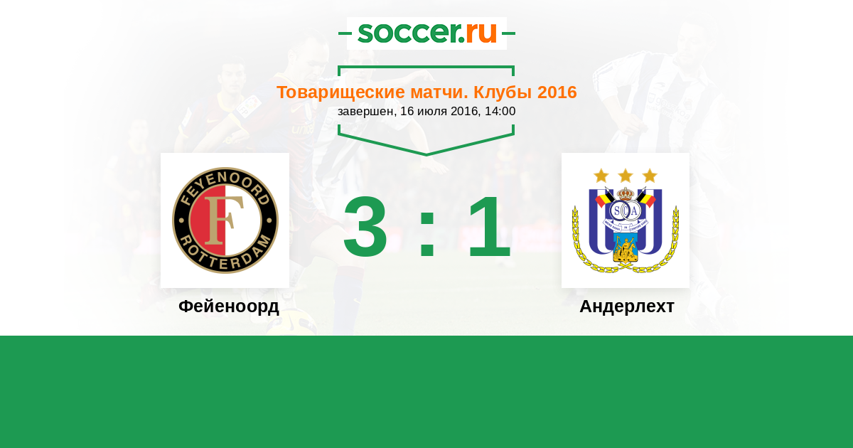 Фейеноорд - Андерлехт: обзор матча 16 июля 2016
