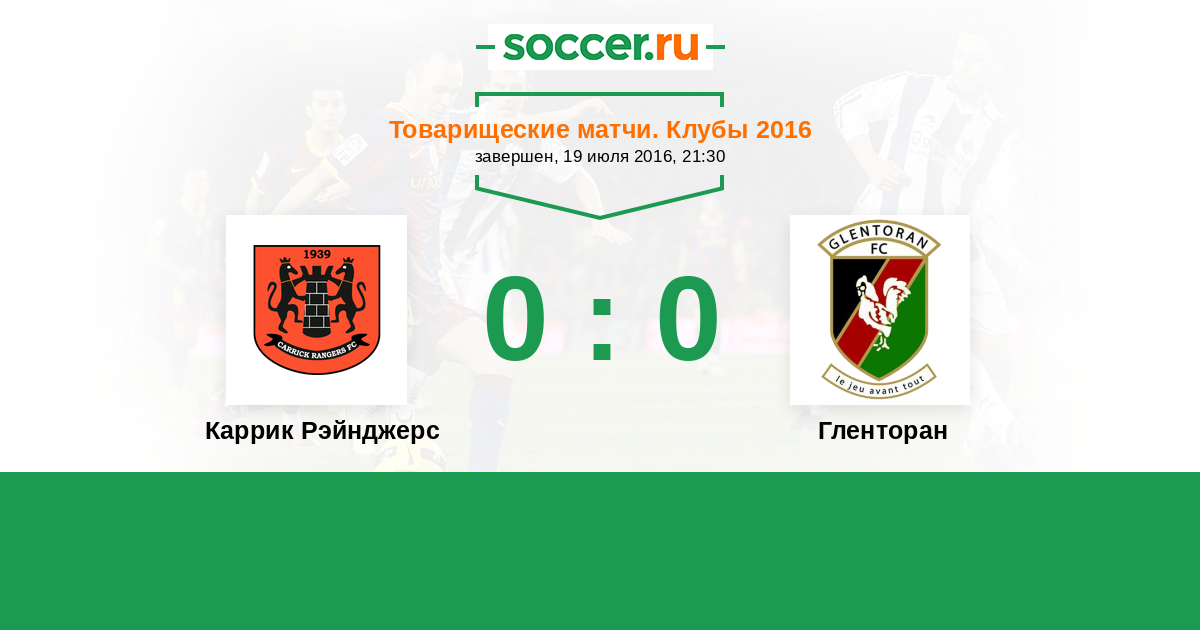 Каррик Рэйнджерс - Гленторан: обзор матча 19 июля 2016