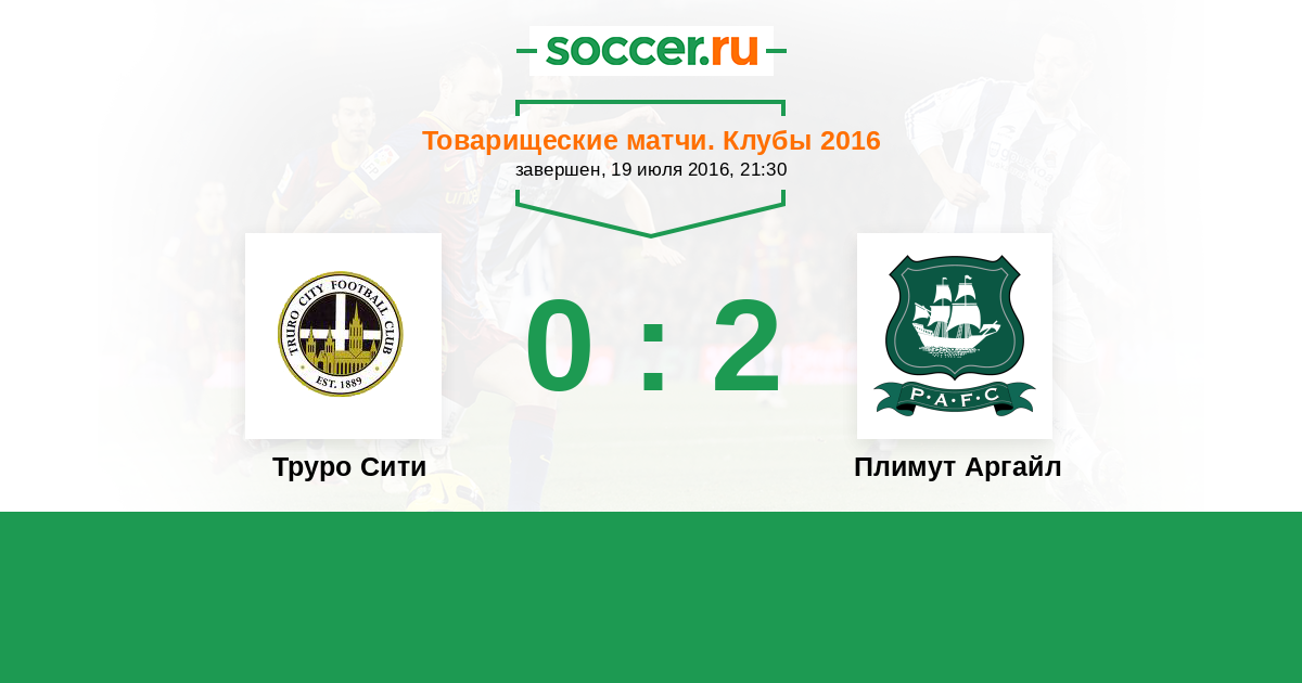 Труро Сити - Плимут Аргайл: обзор матча 19 июля 2016