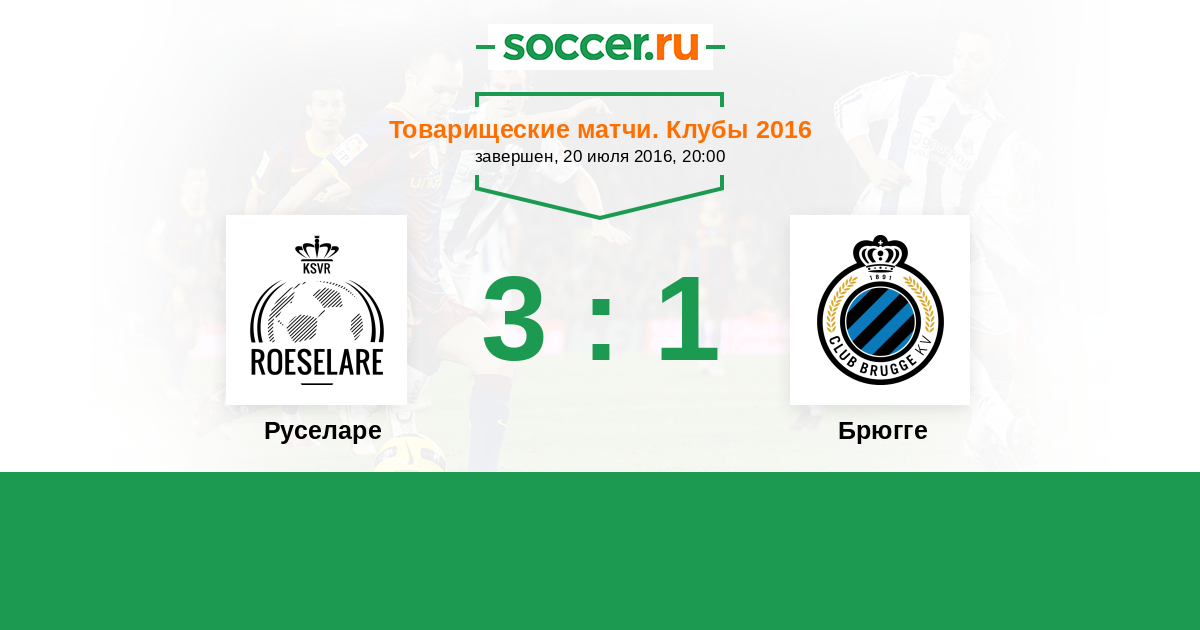 Руселаре - Брюгге: обзор матча 20 июля 2016