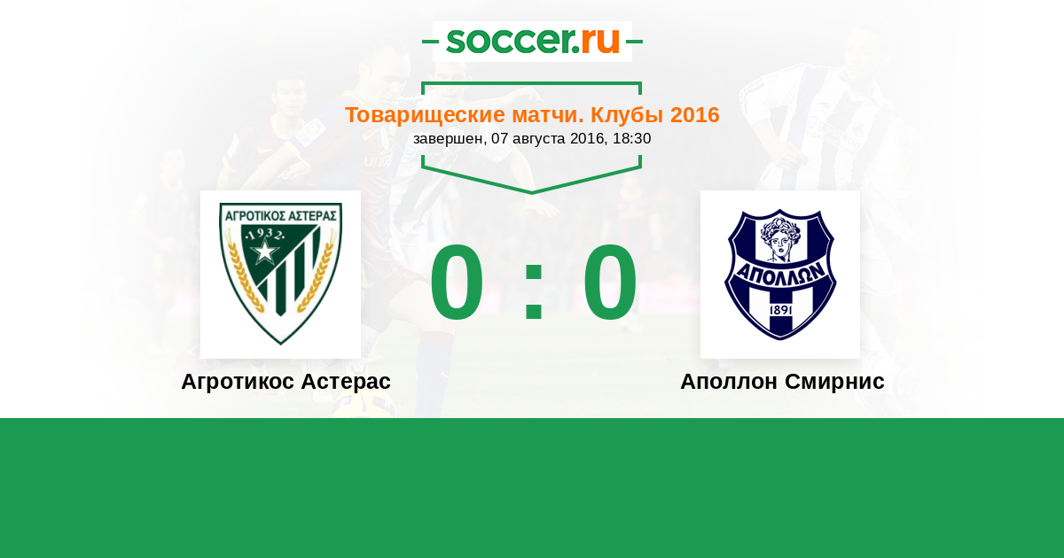 Агротикос Астерас - Аполлон Смирнис: обзор матча 7 августа 2016
