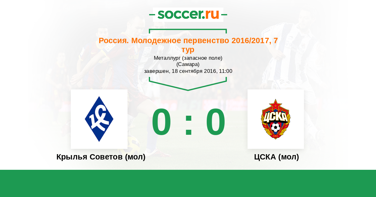 Крылья Советов (мол) - ЦСКА (мол): обзор матча 18 сентября 2016