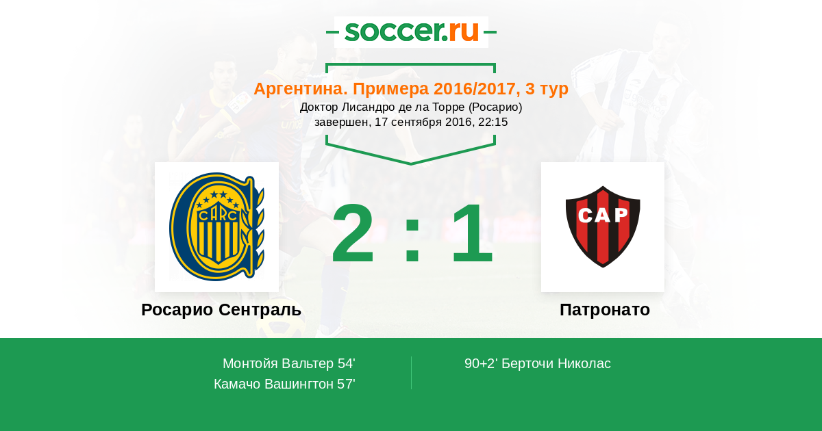 Росарио Сентраль - Патронато: обзор матча 17 сентября 2016