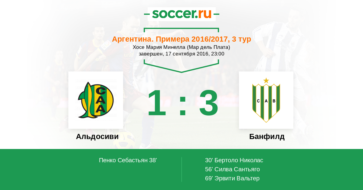Альдосиви - Банфилд: обзор матча 17 сентября 2016