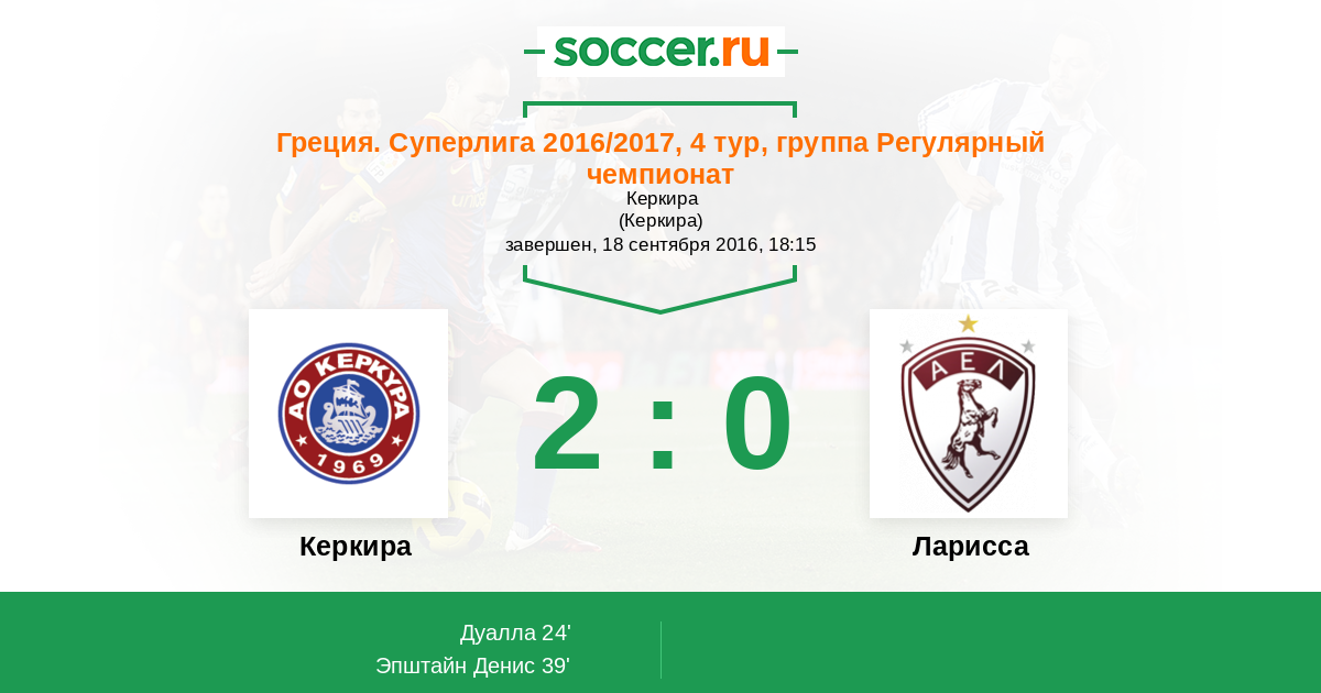 Керкира - Ларисса: обзор матча 18 сентября 2016