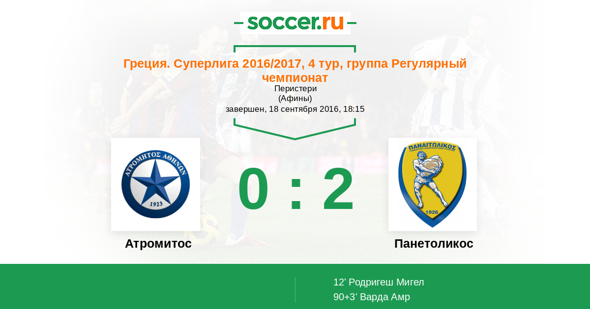 Атромитос - Панетоликос: обзор матча 18 сентября 2016