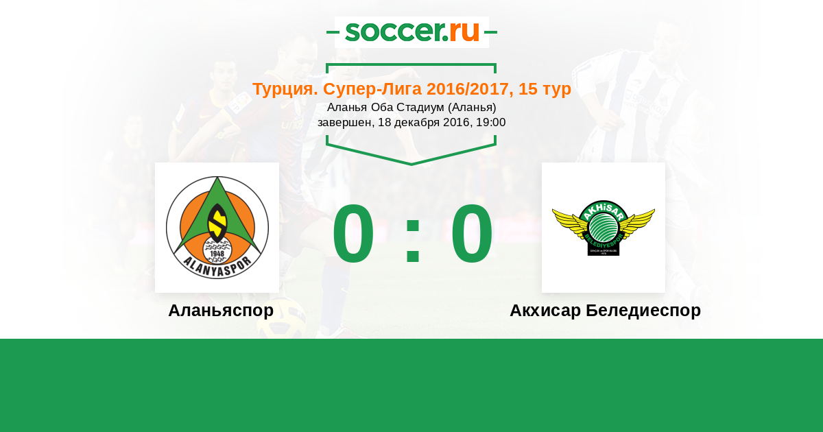 Аланьяспор - Акхисар Беледиеспор: обзор матча 18 декабря 2016