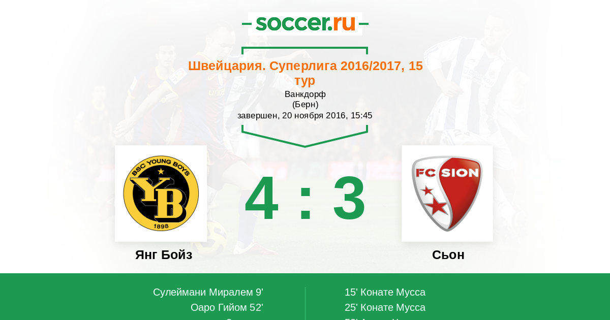Янг Бойз - Сьон: обзор матча 20 ноября 2016