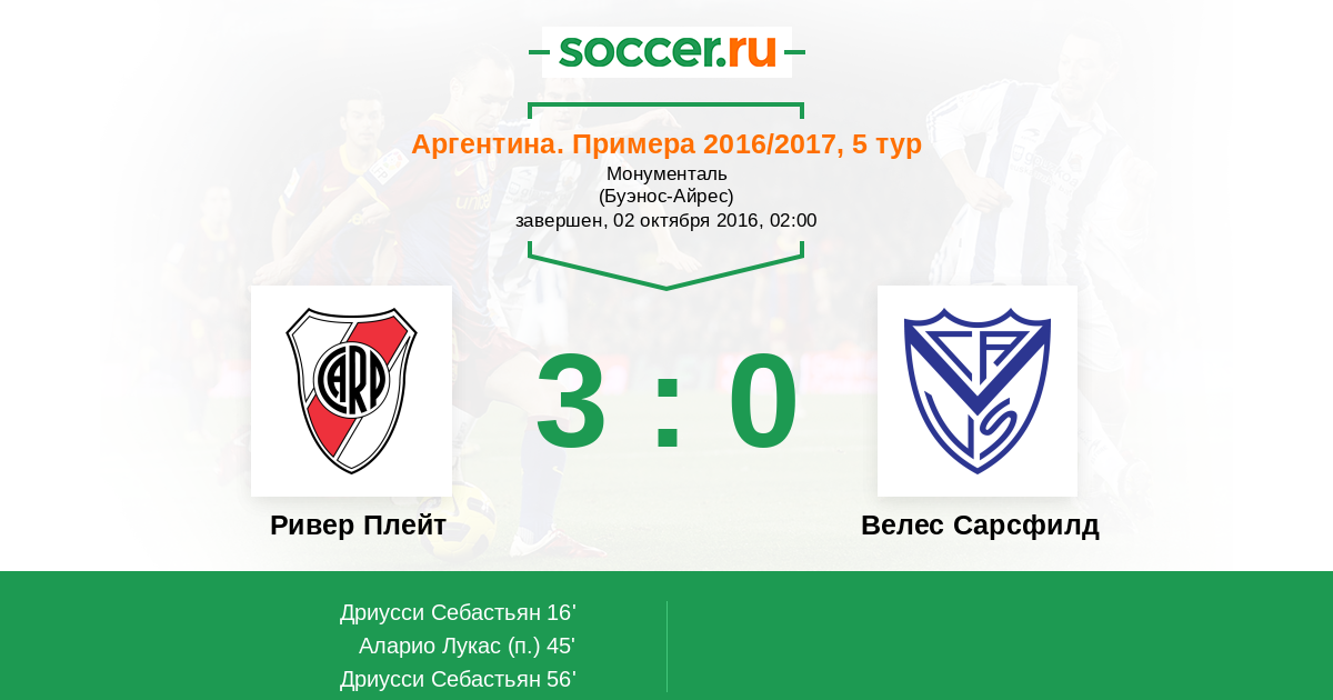 Ривер Плейт - Велес Сарсфилд: обзор матча 2 октября 2016