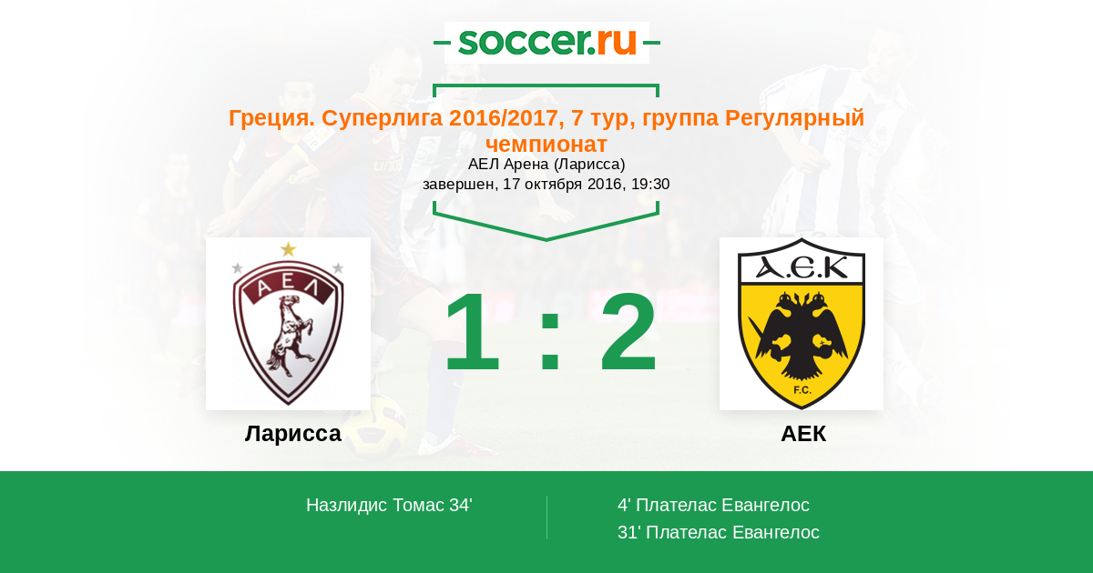 Ларисса - АЕК: обзор матча 17 октября 2016